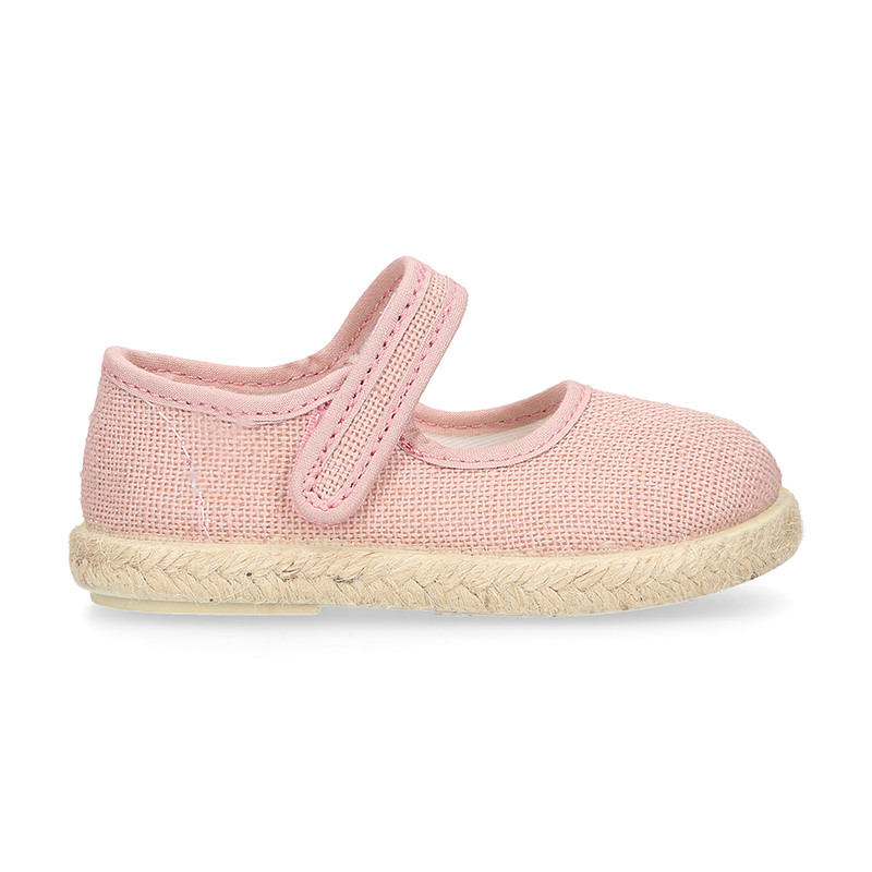 These children’s Mary Jane shoes are crafted from 100% natural cotton linen canvas, in a soft make up pink tone, ideal for the spring and summer seasons. The design features a decorative linen adherent strap closure, adding a sweet and elegant touch, perfect for dressier looks without compromising on comfort.