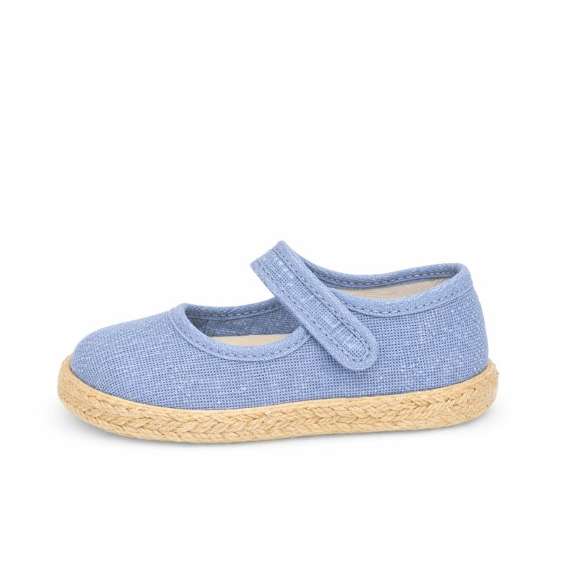 These children’s Mary Jane shoes are crafted from 100% natural cotton linen canvas, in a soft medium blue tone, ideal for the spring and summer seasons. The design features a adherent linen strap closure, adding a sweet and elegant touch, perfect for dressier looks without compromising on comfort.