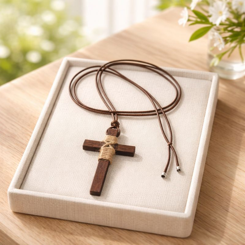 Natural wood crosses are handcrafted and made to order. Each piece is carefully created by our artisan, and the production process takes approximately 15 days, as every cross is made exclusively for each client.