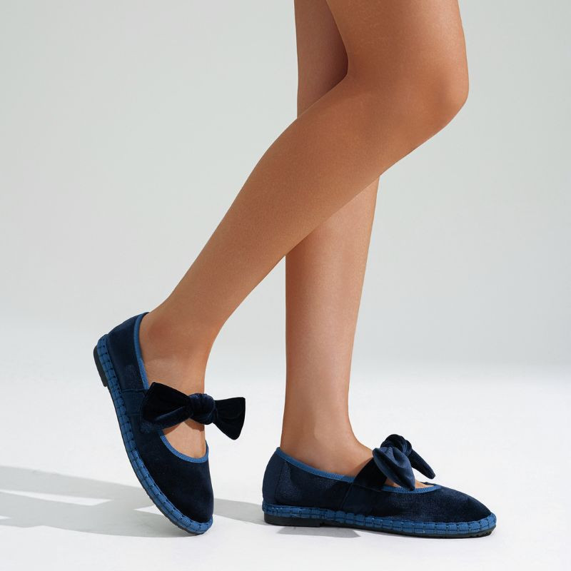 New FASHION Mary Janes with a stylized shape in BLUE velvet and a with bow closure for girls and women. Made of natural velvet canvas in BLUE with premium finishes. They're the latest trend among influencers and today's top moms. With bow closure for a perfect grip.