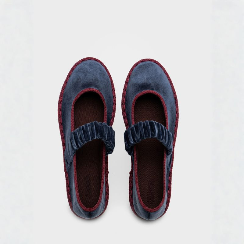 New FASHION Mary Janes with a stylized shape in BLUE velvet and a with elastic band closure for girls and women. Made of natural velvet canvas in BLUE with premium finishes. They're the latest trend among influencers and today's top moms. With elastic band closure for a perfect grip.