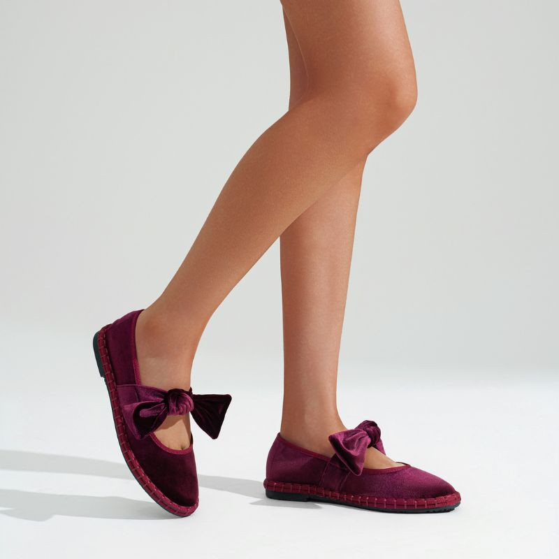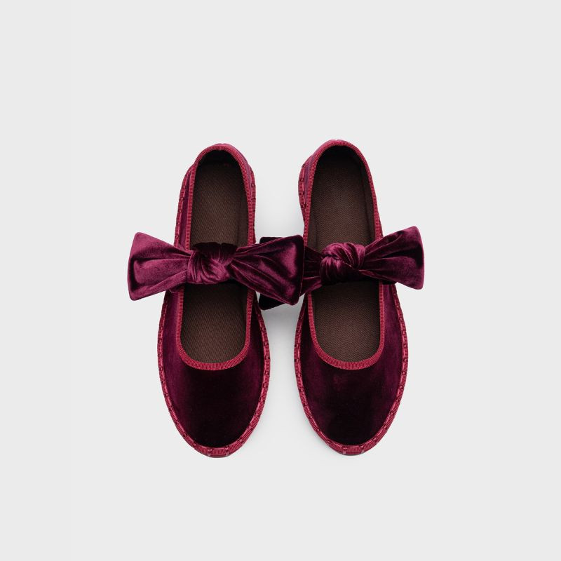 New FASHION Mary Janes with a stylized shape in DEEP RED velvet and a with bow closure for girls and women. Made of natural velvet canvas in DEEP RED with premium finishes. They're the latest trend among influencers and today's top moms. With bow closure for a perfect grip.