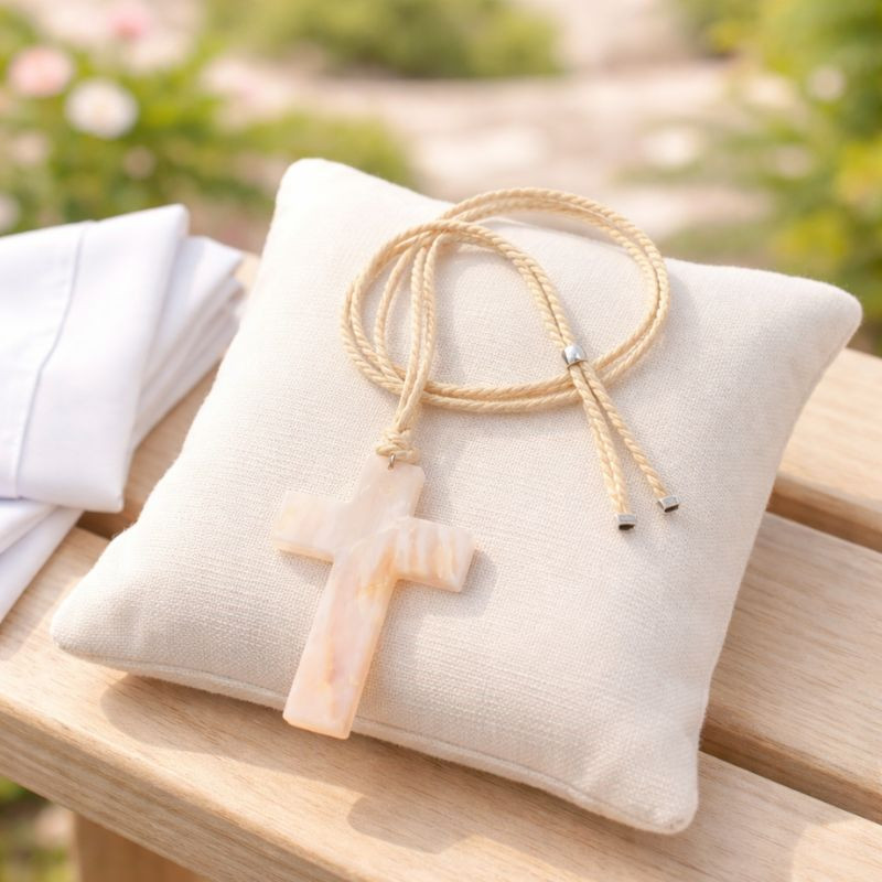 Las cruces de nácar se elaboran artesanalmente bajo pedido. Cada pieza es fabricada a mano por nuestra artesana, por lo que el proceso de creación requiere aproximadamente 15 días, realizándose exclusivamente para cada cliente.