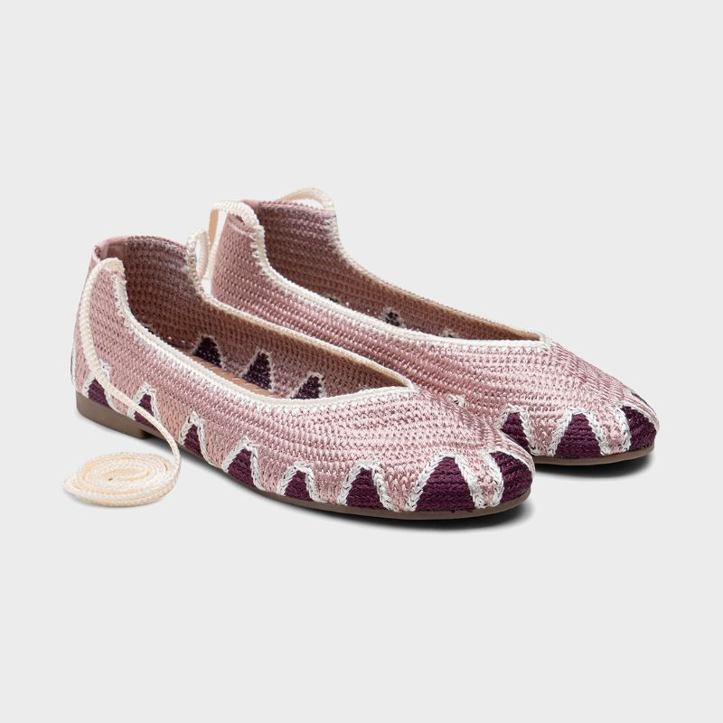 Esta bailarina de crochet con cintas al tobillo en color rosa destaca por su diseño artesanal y su estética delicada de inspiración mediterránea. Tejida cuidadosamente en crochet de fibra natural, ofrece una textura ligera y transpirable, perfecta para los días más cálidos.