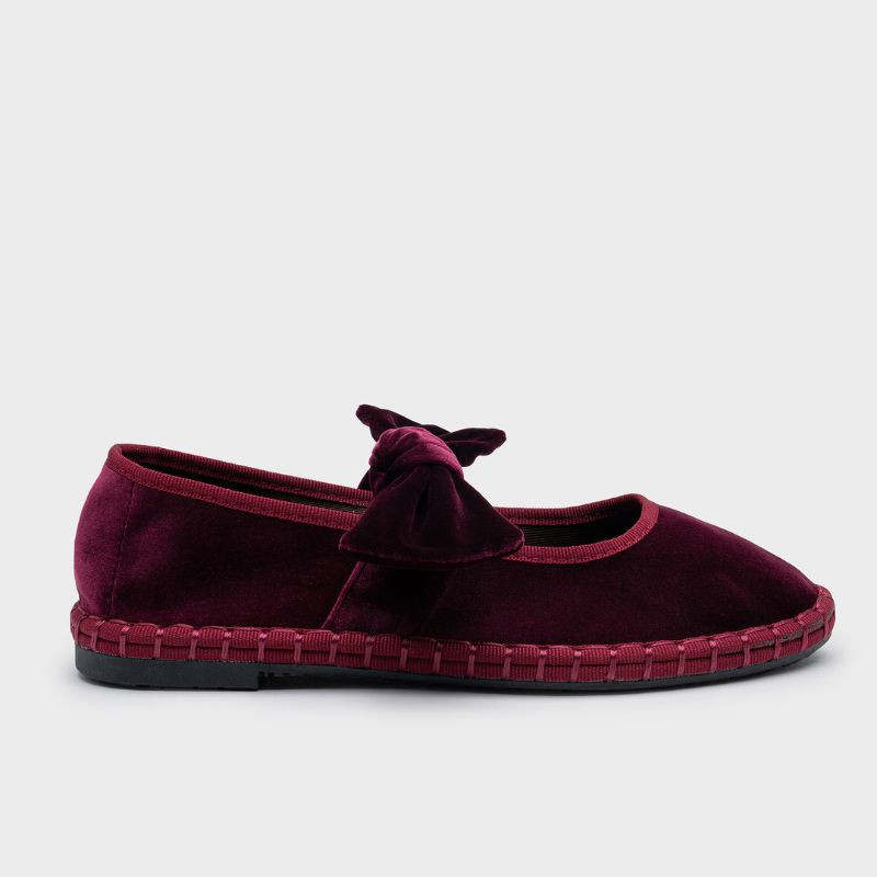 Nueva Mercedita de MODA con horma estilizada en terciopelo BURDEOS con cierre con lazo para niñas y mujer. Realizada en lona terciopelo natural en color BURDEOS, y acabados de primera calidad. Son lo último en MODA entre las influencers y las mamis más top del momento.