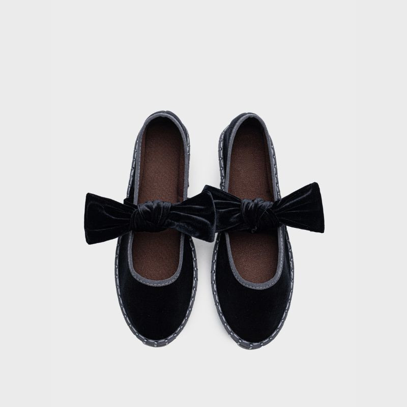 Nueva Mercedita de MODA con horma estilizada en terciopelo NEGRO con cierre con lazo para niñas y mujer. Realizada en lona terciopelo natural en color NEGRO, y acabados de primera calidad. Son lo último en MODA entre las influencers y las mamis más top del momento.