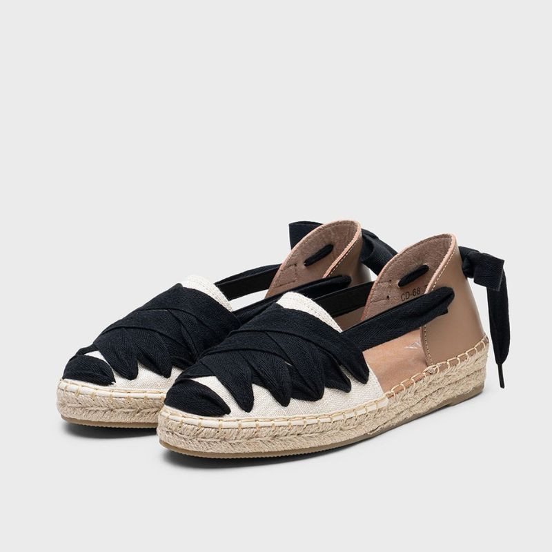 Confeccionadas en tejido de lino de textura natural, destacan por su diseño abierto y sus cintas largas al tobillo, que permiten un ajuste delicado y aportan un aire femenino y sofisticado.