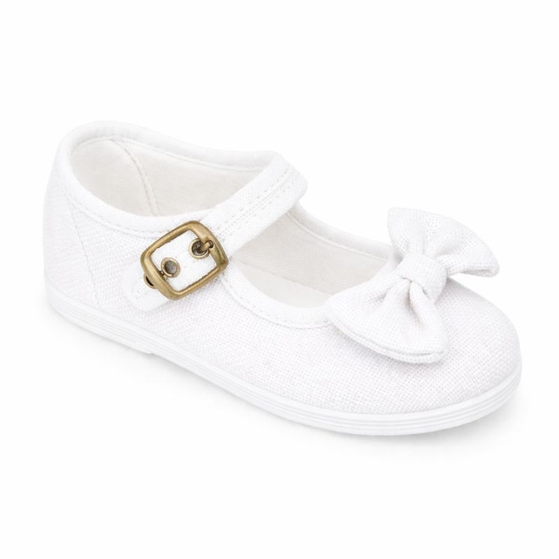 Esta mercedita infantil está confeccionada en lona de algodón lino 100% natural, en un suave tono blanco, ideal para la primavera y el verano. Su diseño con lazo decorativo del mismo tejido aporta un toque dulce y elegante, perfecto para looks más arreglados sin renunciar a la comodidad.