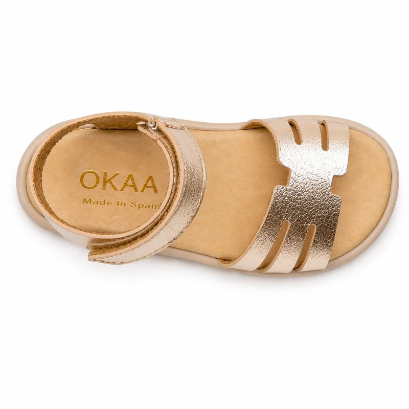 La sandalia barefoot para niña en color dorado laminado combina elegancia, comodidad y libertad de movimiento en un diseño único.